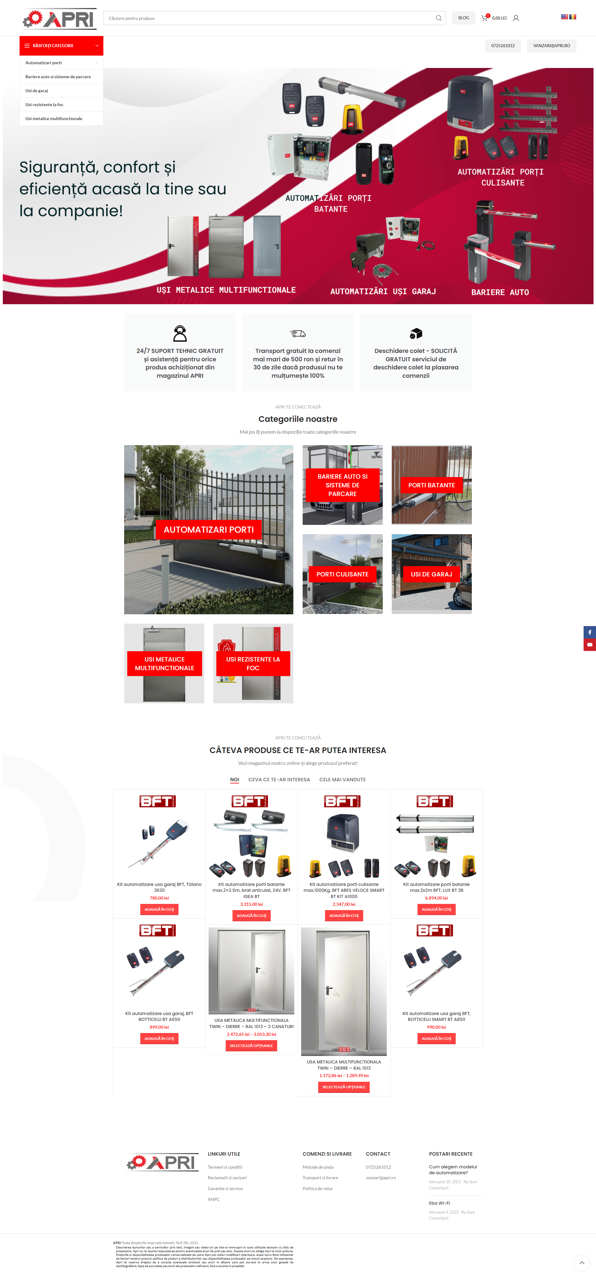 Acest site oferă o gamă variată de produse și soluții pentru automatizarea porților, ușilor și barierelor auto. Utilizatorii pot explora categorii precum uși automatizate, porți cu telecomandă și sisteme de parcare inteligente, fiecare produs fiind însoțit de descrieri detaliate, specificații tehnice și prețuri. De asemenea, site-ul include informații despre instalare, întreținere și asistență tehnică, pentru a asigura o experiență de utilizare completă.