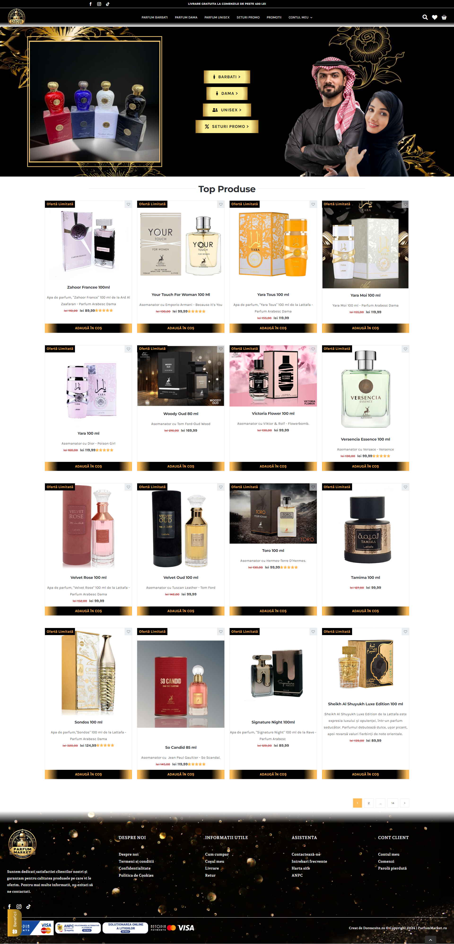 Această platformă oferă o selecție extinsă de parfumuri de brand, atât pentru femei, cât și pentru bărbați, cu accent pe calitate și autenticitate. Magazinul online este ușor de navigat, oferind clienților informații detaliate despre fiecare produs, inclusiv recenzii și recomandări. Designul simplu și elegant face ca procesul de cumpărare să fie rapid și plăcut, cu opțiuni multiple de livrare și plată.
